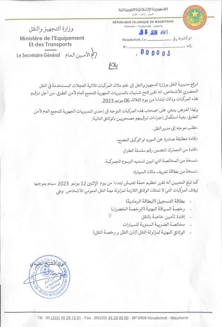 أعلنت وزارة التجهيز والنقل عن إجراءات تأمينية تخص مركبات ثلاثية العجلات “تو توك” وتشمل العجلات ثلاثية الأبعاد أيضا عجلات لنقل البضائع.