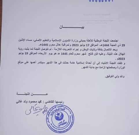 لـجـنـة الأهـلـة: الأربـعـاء هـو فاتح شهــر مُـحـرم للعام 1445هــ