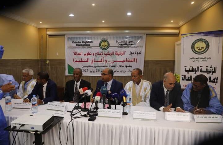 نظم نادي القضاة الموريتانيين، اليوم السبت في نواكشوط، ندوة حول الوثيقة الوطنية لإصلاح وتطوير العدالة.. المضامين وآفاق التنفيذ.