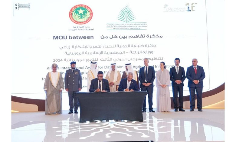 ويدخل التوقيع في إطار علاقات التعاون بين موريتانيا، ممثلة في وزارة الزراعة، وجائزة خليفة الدولية لنخيل التمر والابتكار الزراعي، الرامية إلى النهوض بقطاع نخيل التمر في موريتانيا.