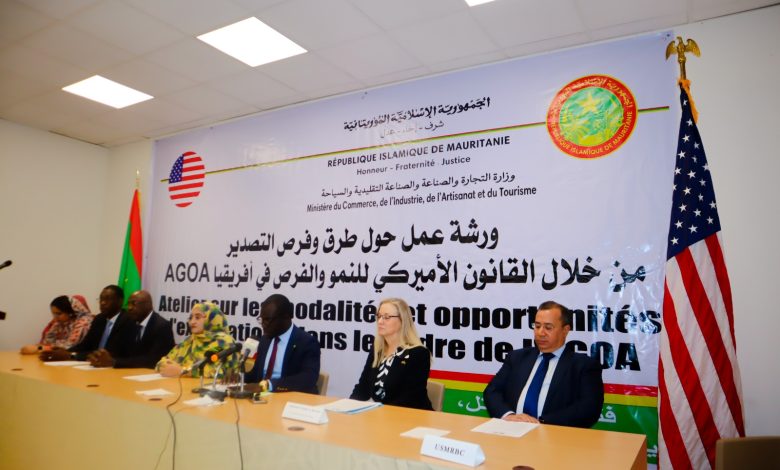 وتنظم هذه الورشة من طرف وزارة التجارة والصناعة والصناعة التقليدية والسياحة، بالتعاون مع السفارة الأمريكية في موريتانيا, بهدف تحديد السبل والوسائل اللازمة لتعزيز وتطوير الفرص التجارية التي يوفرها قانون النمو والفرص في أفريقيا, من أجل تحقيق النمو من خلال تطوير التجارة مع الولايات المتحدة .