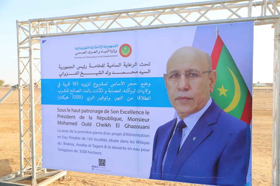 وضع رئيس الجمهورية محمد ولد الشيخ الغزواني حجر الأساس، إيذانا بانطلاق أشغال مشروع نقل المياه متعددة الاستخدامات من ضفة النهر إلى 165 بلدة في ثلاث ولايات هي لبراكنة وتگانت ولعصابة.