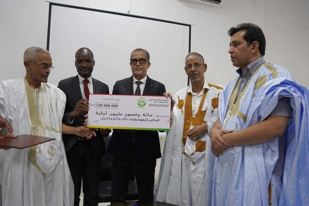وقع المندوب العام للتضامن الوطني ومكافحة الإقصاء، حمود ولد امحمد، صباح اليوم الجمعة، بمقر المجلس الجهوي بمدينة أكجوجت اتفاقية مع المجالس الجهوية لولايات آدرار وإينشيري وتكانت لدعم المشاريع المحلية وتعزيز اللامركزية بسقف يصل 150 مليون أوقية.