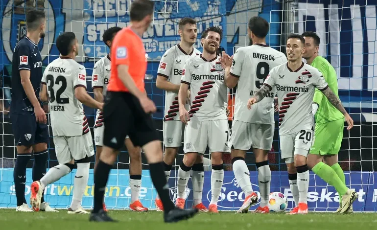 تغلب باير ليفركوزن بطل الدوري الألماني لكرة القدم 5-صفر على مضيفه بوخوم اليوم الأحد ليحافظ على سجله خاليا من الهزائم هذا الموسم للمباراة الـ50 على التوالي في كل المسابقات.