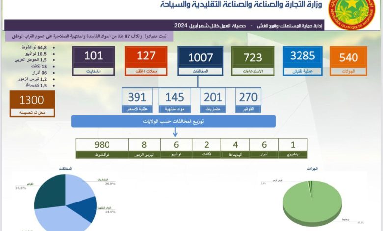 نشرت وزارة التجارة والصناعة والصناعة التقليدية والسياحة، الحصيلة الشهرية لعمل إدارة حماية المستهلك وقمع الغش والمندوبيات الجهوية، خلال شهر إبريل الماضي.