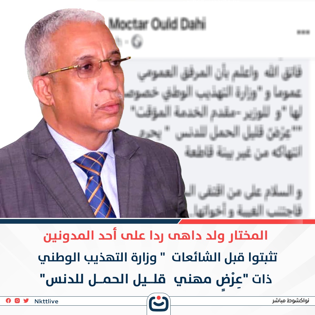 المختار ولد داهي ردا على أحد المدون: تثبتوا قبل الشائعات فوزارة التهذيب الوطني ذان عرض مهني قليل الحمل للدنس