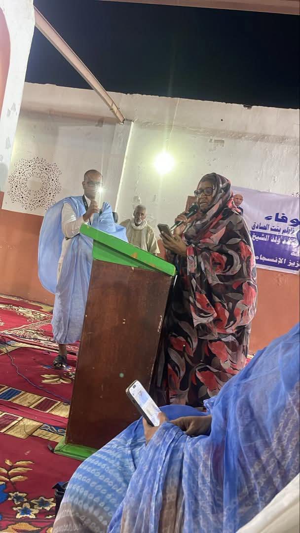 وبدوره، شكر رئيس الوفد يحيى ولد أحمد الوقف صاحبة المبادرة، مثمّنًا السهرة وما حملته من مضامين وطنية صادقة، ودعا الحضور للمشاركة في مهرجان حزب الإنصاف يوم الأربعاء بدار الشباب بالنعمة، وكذلك التواجد المكثف يوم الخميس لإنجاح زيارة فخامة رئيس الجمهورية محمد ولد الشيخ الغزواني.