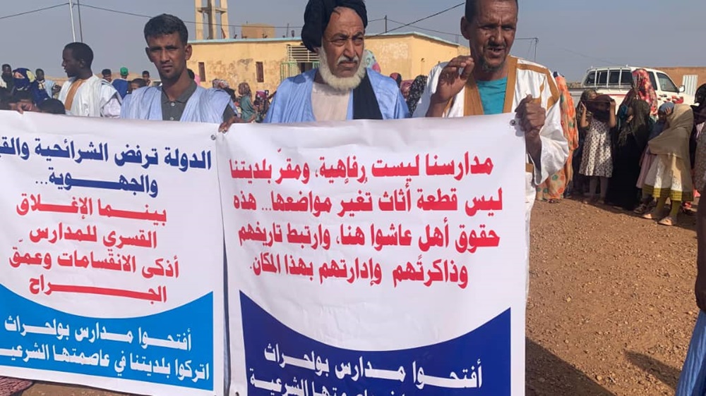 وشارك في الوقفة فاعلون وقادة رأي بالبلدية من بينهم العمدة السابق للبلدية ورئيس رابطة آباء التلاميذ التيجاني ولد لقظف.