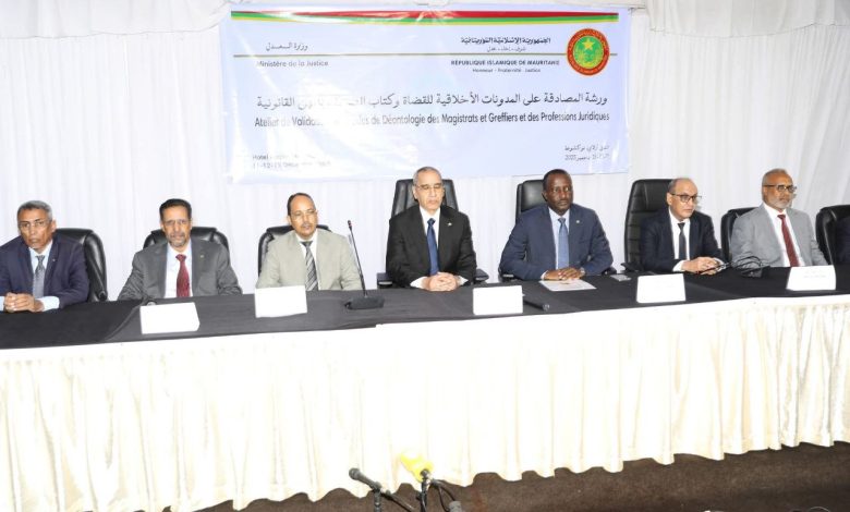 نظمت وزارة العدل اليوم الأربعاء في نواكشوط، ورشة للمصادقة على المدونات الأخلاقية للقضاة وكتاب الضبط والمهن القانونية.