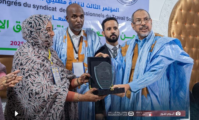 قدمت نقابة مهنيي العمل الاجتماعي، اليوم، خلال مؤتمرها العادي الثالث، درع تكريم لوزيرة العمل الاجتماعي والطفولة والأسرة، صفية انتهاه، تقديرا لجهودها الداعمة للقطاع، وحرصها على تعزيز الحوار والانفتاح مع الفاعلين المهنيين.