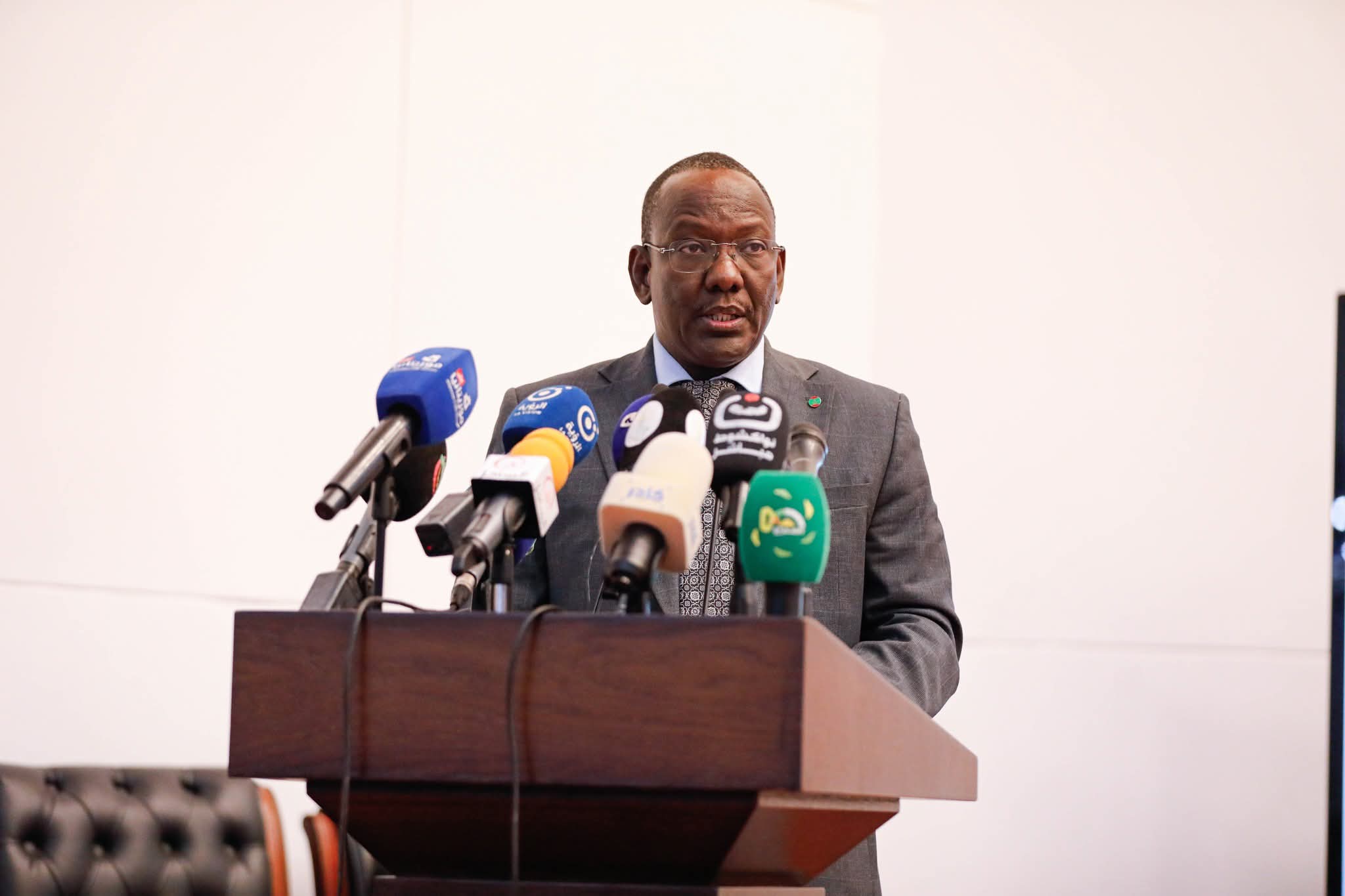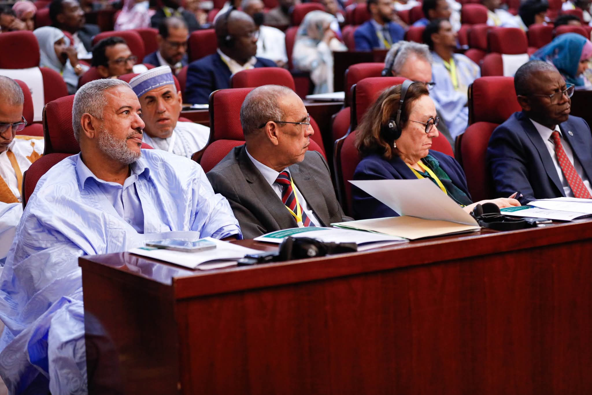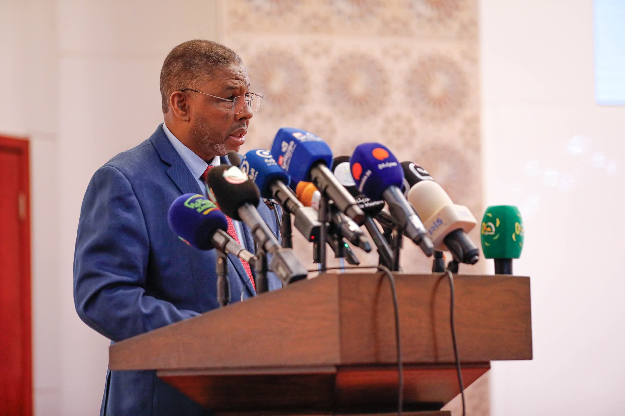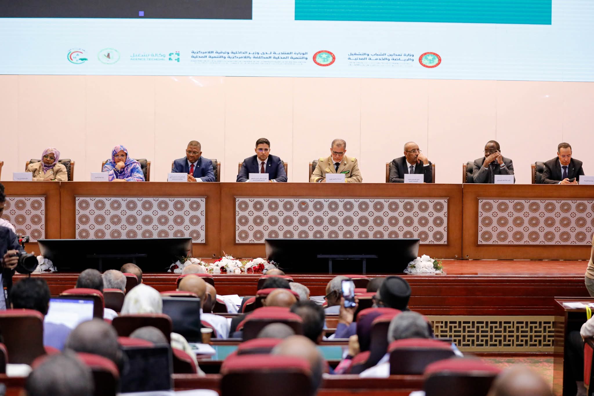 أشرف وزير تمكين الشباب والتشغيل والرياضة والخدمة المدنية، محمد عبدالله لولي، رفقة الوزير المنتدب لدى وزير الداخلية وترقية اللامركزية والتنمية المحلية، المكلف باللامركزية والتنمية المحلية، يعقوب ولد سالم فال، اليوم الثلاثاء في نواكشوط، على الحفل الرسمي لإطلاق برنامج دعم الجماعات الترابية من أجل التشغيل.
