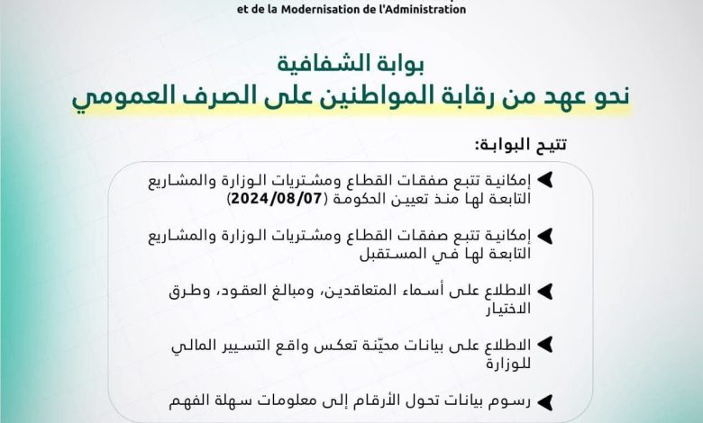 وحسب الوزارة فإن إطلاق البوابة يأتي في إطار إرساء الحكامة الرشيدة، وتعزيز الشفافية، وتكريس المساءلة، وتفعيل دور الرقمنة في تحسين الأداء العمومي.