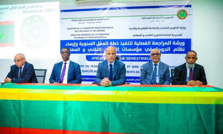 نظمت وزارة التكوين المهني والصناعة التقليدية والحرف اليوم في نواكشوط ورشة عمل للمراجعة الفصلية لتنفيذ خطة العمل السنوية وإرساء نظام الجودة في مؤسسات التكوين التقني والمهني، وذلك بالمركز العالي للتعليم التقني.