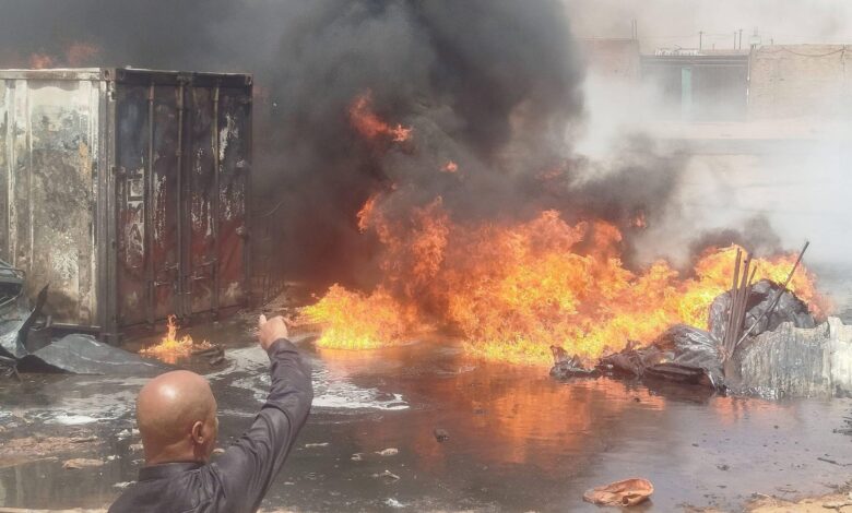 حريق هائل في مخازن بدوريات يلتهم ممتلكات 4 أشخاص