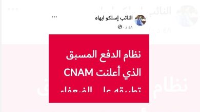 نائب برلماني ينتقد نظام الدفع المسبق المعتمد من CNAM