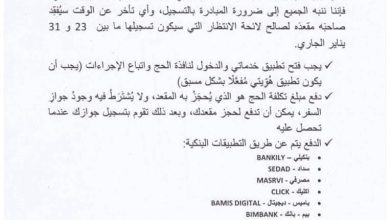 حددت وزارة الشؤون الإسلامية والتعليم الأصلي يوم 22 يناير الجاري كآخر موعد لتسجيل أسماء الفائزين في قرعة الحج، محذرة من…