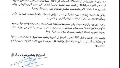 أعلن وزارة التجهيز والنقل الشروع في تنفيذ حملة تفتيش واسعة النطاق للسيارات على عموم التراب الوطني، ابتداءً من فاتح يناير…