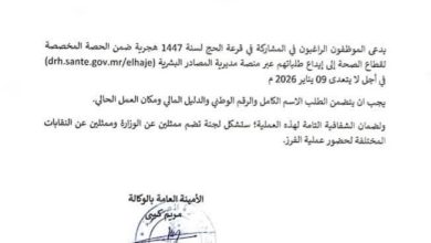 درست لجنة الموارد البشرية والشؤون الاجتماعية والثقافية بالبرلمان الموريتاني، خلال جلسة عقدتها أمس الأربعاء، مشروع القانون رقم 25-040 المتعلق بالترخيص…
