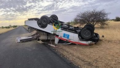 نجاة سائق سيارة إسعاف بعد حادث انقلاب غرب مدينة النعمة