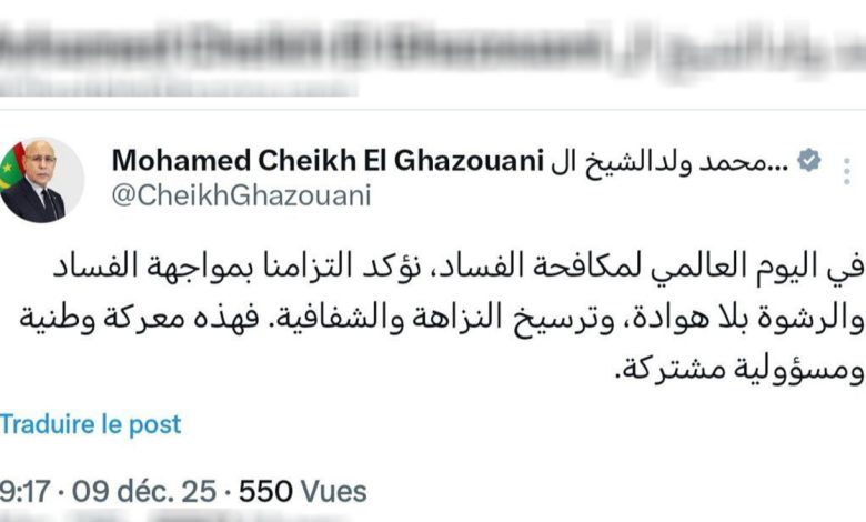 أكمل القراءة »جدد الرئيس محمد ولد الشيخ الغزواني التزام الدولة الثابت بمحاربة الفساد والرشوة بكل حزم، والعمل على ترسيخ مبادئ النزاهة والشفافية…
