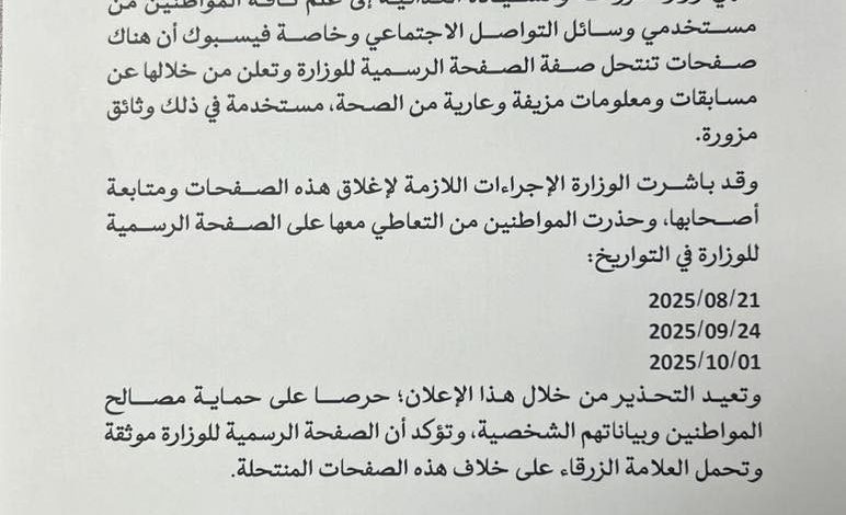 أكمل القراءة »حذرت وزارة الزراعة والسيادة الغذائية من وجود صفحات على فيسبوك تنتحل صفة صفحتها الرسمية، وتروج لمعلومات ومسابقات مزيفة باستخدام وثائق…