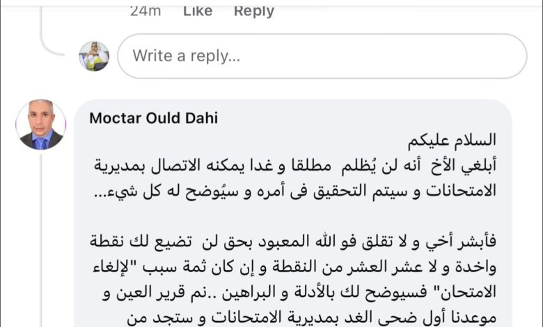 أكمل القراءة »قال وزير التهذيب الوطني وإصلاح النظام التعليمي المختار ولد داهي -في أول رد له على فيديو متداول لتلميذ بخصوص ظلمه-…